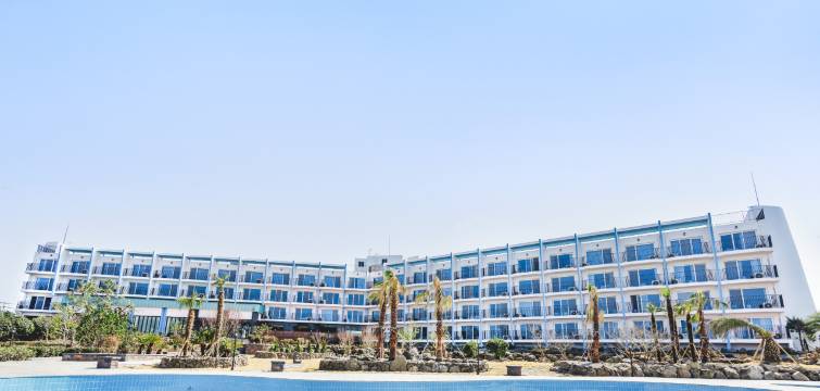 离海边有一些远,走路大概十几分钟,酒店很安静,基本都是来度假的韩国家庭,房间里有微波炉和锅碗瓢盆,房间也很干净,性价比不错