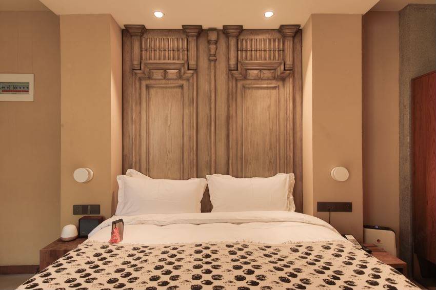 由清代夯土老房改建,保留乡村元素(如夯土墙、青山翠竹环绕),室内采用现代时尚设计,新旧碰撞和谐统一。这是我对这家民宿的第一印象!