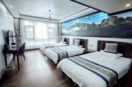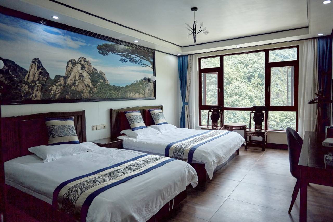 山景双床房,房间干净整洁,开窗有山景、有小溪。离景区入口步行5分钟,楼下是自家饭店,菜品丰富。老板很热情,停车场就在旁边,停车很方便。
