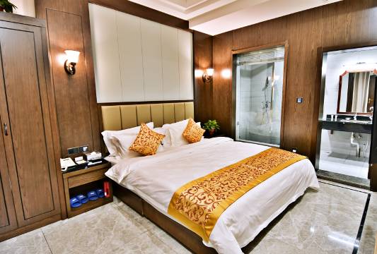 房间过去的老装修,但是维护维持的挺好门口停车也方便餐饮一体的各方面都不错算是当时的三星