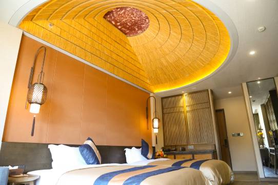 客栈位于日照市天台山旅游区内,是以“太阳文化”为核心打造的特色精品旅游酒店。酒店以休闲度假为定位,将天台山自有的优美环境和景区配套相结合,满足入住客人的吃住行、游购娱等度假休闲体验活动。在这里,你可以与山林草木繁花共呼吸,远离都市浮躁纷繁,放下一切心灵重负,收获精神与身体上的健康生活体验。所有房间都带有景观小庭院,引入了富硒温泉,站在庭院内,可观山赏景,也可享受温泉带来的舒适惬意,增添了康养与赏景的浪漫。