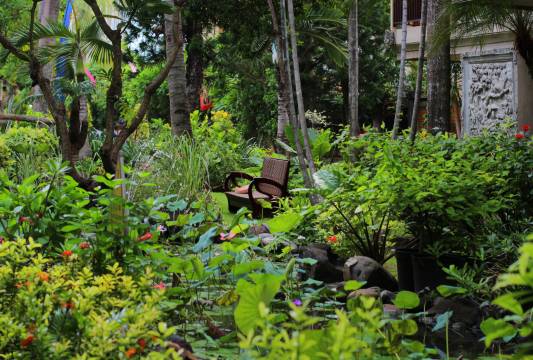 酒店环境不错,有热带花园还有一个泳池,房间设施也还不错,有阳台可以晾衣服,就是在小巷中,稍微有点难找,总体还是可以的!