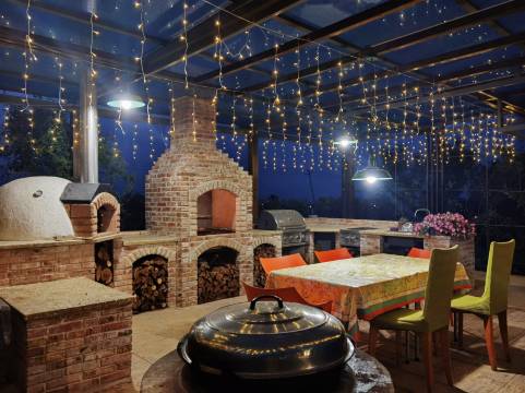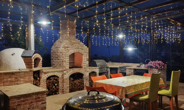 庭院有风景独好的私享花园,以及意式烤炉等多种烧烤工具,能满足情侣休闲、家庭出游、生日聚会、企业团建等多种形态的多样需求。同时,地下一层设有私人影音室,安装了JBL音响和芝华士按摩椅,能让您在愉快嗨唱的同时也得到惬意的放松。