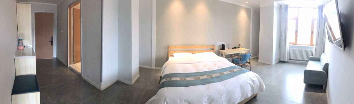 免费升级的房间,信价比高,周边吃喝方便,两位前台小姐姐热情又周到,每天都有免费的饮料和矿泉水,下次还要来!