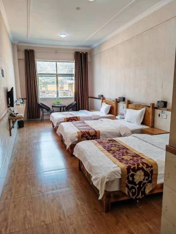 房间够大,我带父母出游,三人可以住下。我们在红格温泉泡完温泉,开车过来不远。