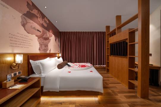 酒店拥有高逼格的咖啡馆文化,大堂独有的咖啡吧,图书馆,网红打卡区,客房艺术走廊,让每一位入住的客人就像徜徉在一个美式复古的多元素艺术空间里。