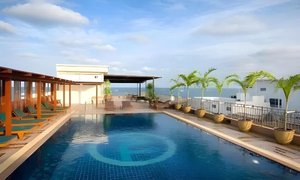 酒店离海滩很近,过条马路就到了,出行非常方便。工作人员服务很好,房间干净,空调也给力。早餐选择很多。