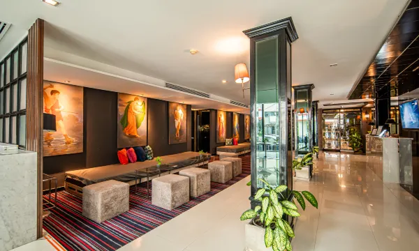 酒店的外观现代简约,内部设计典雅精致,客房温馨明亮。酒店设有24小时前台、无障碍设施、免费停车场,提供洗衣服务、按摩服务以及唤醒服务。旅游咨询台则可为您安排当地的旅游活动。酒店客房以提供舒适、便捷的居住环境为高标准,配备现代化的泰式家具、平面有线电视、保险箱、迷你吧以及私人浴室等。