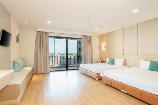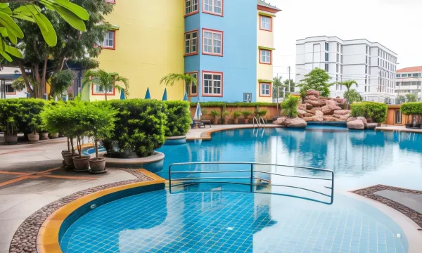 酒店非常好,推荐入住。酒店位于小巷里,离芭提雅车站不远,步行到芭提雅海滩过去二十分钟,路上会经过Terminal 21夜市和唐人街,非常热闹,周边小餐馆很多,位置出行方便。酒店设施很新,泳池大,房间大,阳台大,浴室大,有冰箱,免费瓶装水,早餐丰富,性价比很高,适合家庭出游,推荐入住。