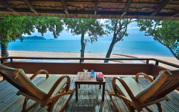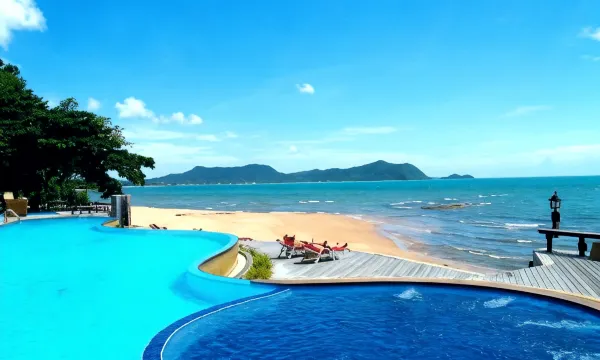 度假村风格的酒店,环境自然优美,紧邻海边。