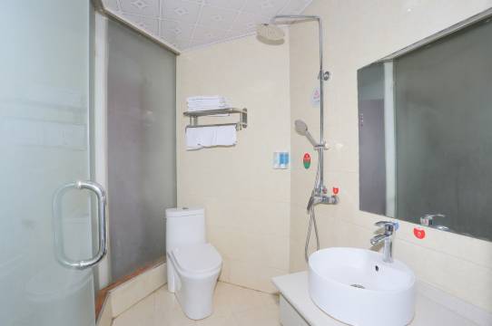 房间干净整洁,设施齐全,床铺舒服,前台帅哥还帮忙把行李提到房间,吃饭非常方便,值得推荐,
