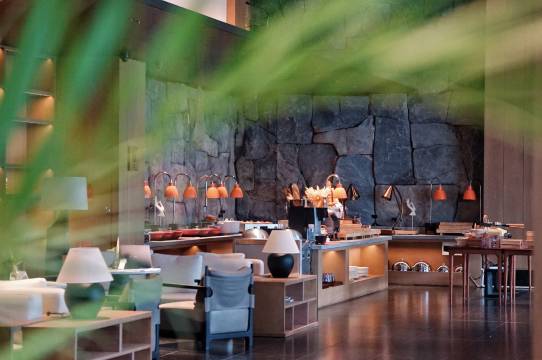 是完全长在我审美点上的酒店。中式园林的庄园设计,小桥流水潺潺,绿意掩映,两层小楼左右错落,高低呼应,行走其间,处处是景,步移景异,静谧而风雅。一楼客房带有一个私密的小院子,木楼梯上二楼的客房带有一个可私用的公共露台。我们入住的客房空间宽敞舒适,最令人倾心的莫过于那大大的落地窗,将内庭精心打理的园林景观引入室内,舒心宁静。