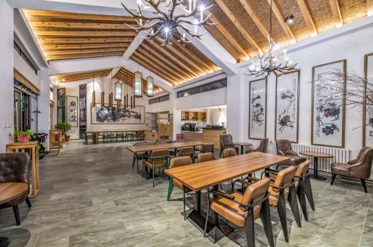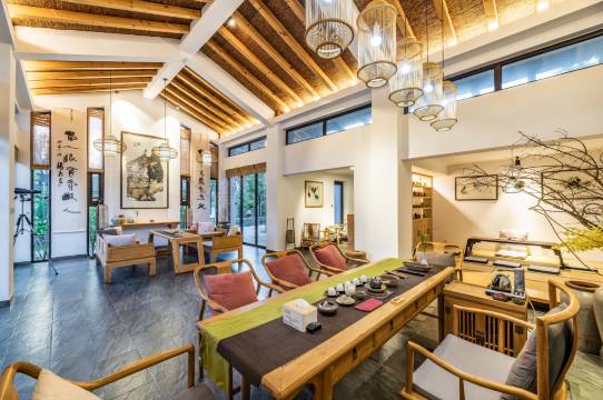 我住的房间足足有五十平,挑高特别棒,一点不压抑,宽敞明亮得让人心情豁然开朗。最爱那个私家庭院,坐在那里听风看山,真正感受到了“结庐在人境,而无车马喧”的静谧。