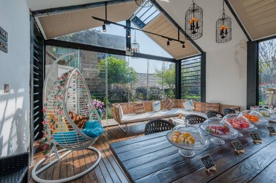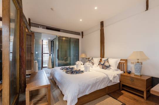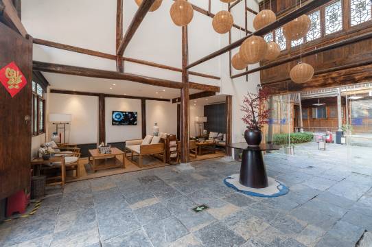 庭院保留了屯堡民居原有的木质结构与石墙,院内绿植鲜花点缀,充满生机。镶嵌雕花玻璃窗的大厅与书吧,明亮而温馨,让你在阅读、闲聊中舒缓身心。这里有管家式贴心服务,让你在古镇的时光充满诗意与浪漫。