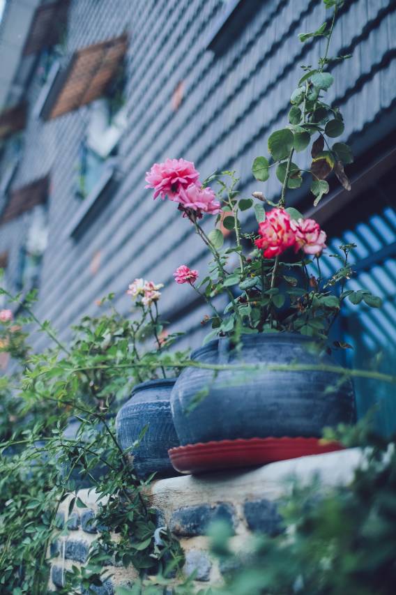 满墙壁的蔷薇攀沿绽放,窗台上的月季摇曳生姿...