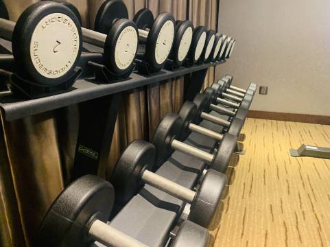 设施:有健身房,哑铃跑步机,单车最基本的还是能保障的。提供免费的瓶装水。