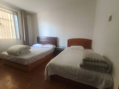 四室一卫,入住的时候住其中一间,每个屋子都很干净,床很大,有写字桌,提供塑料拖鞋,用电方便