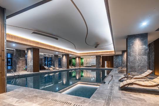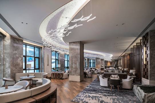 张家口云瑧金陵翠云山酒店位于群山环绕的翠云山国际旅游度假区,奥雪文化小镇、高端亲子滑雪场、生态游憩体验轴、乡村休闲度假区及森林游乐休闲区等元素交替演绎,建筑精髓与当代旅居理念相得益彰,成功塑造了一场中式度假盛筵.酒店毗邻78平方公里的翠云山景区,并与草原天路、张北坝上草原、清水河源国家湿地公园、和平森林公园、海留图湿地公园形成环崇礼养生度假圈,配以温泉、SPA、篝火、滑草、闪电湖等丰富的娱乐项目,传统旅行风和当代度假风完美融合,并因地制宜融入了自然风情和运动娱乐。