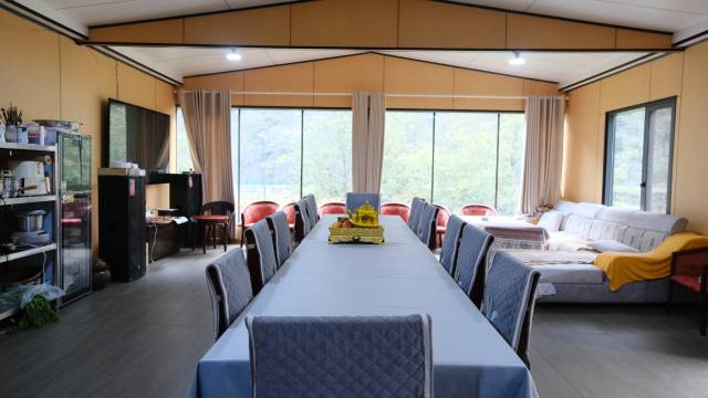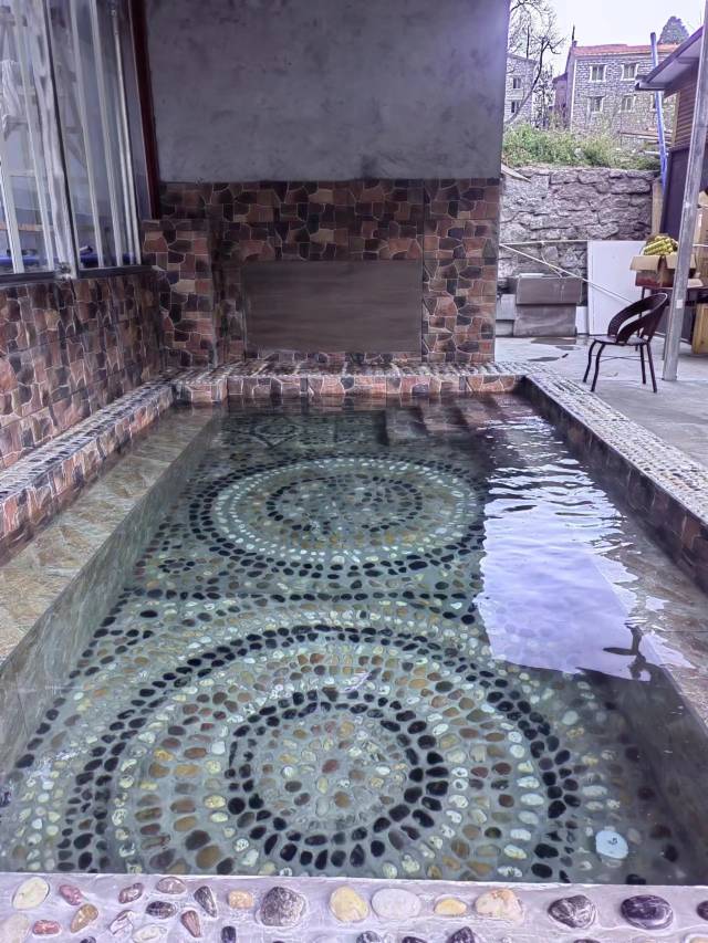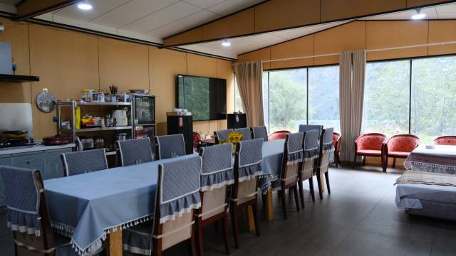 酒店离镇子有一公里路程,河边的风景真的很好看,因为可以借用厨房做饭,特意买了食材自己动手,安慰一下离家一个多月的胃。房间里干净利落,地板都是没有一点儿灰尘,床铺上的布草都是新的,一看老板就知道是个干净利落的人。餐厅旁边的温泉池每天都是现放水,虽然没有泡汤,但是看别的客人在几度的情况下裹着浴巾就能回房间休息,可见温度不低,而且这里的温泉也非常有名。下次再来毕棚沟玩一定会再刷这个酒店