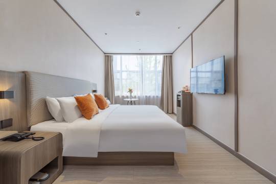前台小姐姐/小哥哥的服务就特别热情,办理入住又快又贴心,有问必答特别耐心。房间卫生做得超到位,角落也没一点灰尘,看着就特别舒服。设施很齐全,日常需要的东西都有,而且地暖给得特别足,在房间里穿薄外套就够,完全不用怕冷。最满意的还是位置!离夜市商业街不到500米,晚上溜达着就能去吃美食、逛小店;到人民广场才100米,想散步或者去周边景点都超方便。重点是有独立停车场,自驾过来完全不用愁停车问题,太省心了!推荐给大家