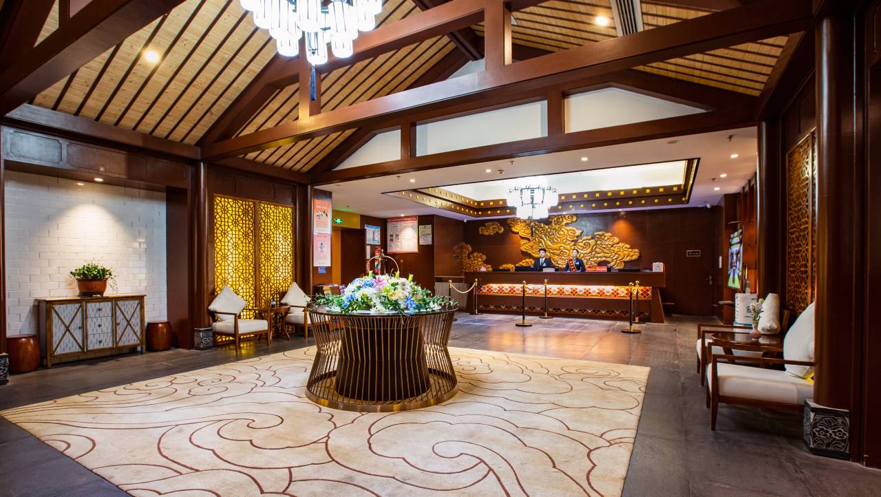 设施完善,中规中矩的酒店,离开高速很近,非常方便!房间干净卫生,房间非常安静!中式房间布置,古色古香。非常满意!