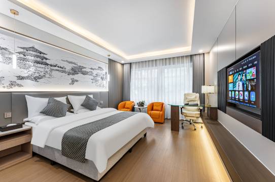 设施方面特别贴心,房间里洗漱用品品质不错,洗发水香味特好闻,空调制冷效果都很好,还配备了高速WiFi,无论是休闲还是办公需求都能满足。环境也不错,大堂装修大气雅致,灯光柔和让人感觉很放松。走廊安静整洁,房间内隔音效果棒,临街但不吵,大窗外的景色也很宜人。卫生做得也特别到位,住得太舒心了!