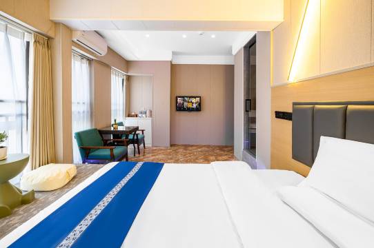 房间很干净,房间设施也挺全的,最重要的是老板人超级好!我到的时候预定的房型还没有空房,老板直接免费给我升级房间了,住的很舒服,谢谢老板嘿嘿