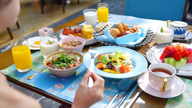 更惊喜的是酒店的早餐,种类丰富到让人眼花缭乱!中式的粥粉面、包子馒头,西式的面包、培根、煎蛋,还有新鲜的水果、现磨咖啡和各种饮品,食材新鲜,味道正宗,工作人员还会及时补充食物,完全不用担心不够吃。用餐环境也很整洁,餐具消毒到位,让人吃得放心又舒心。