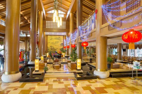 进入大堂装修非常大气 前台服务人员很热情 当天晚上去的温泉 拿着房卡可以免费泡温泉 ,温泉的水非常好 泡完身体非常舒服 泡完去二楼休息了一会 别提有多舒服了 总体感觉是一家非常好的度假酒店