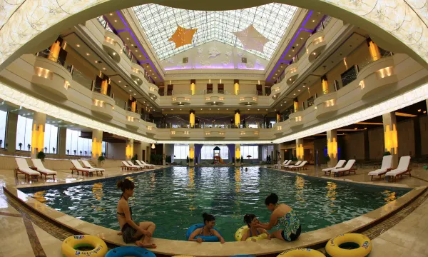 辽宁室外温泉天花板 水是真的温泉水 非常棒 房间也很干净 早餐不错 游泳池也很大水很干净 是泡温泉度假的好去处。
