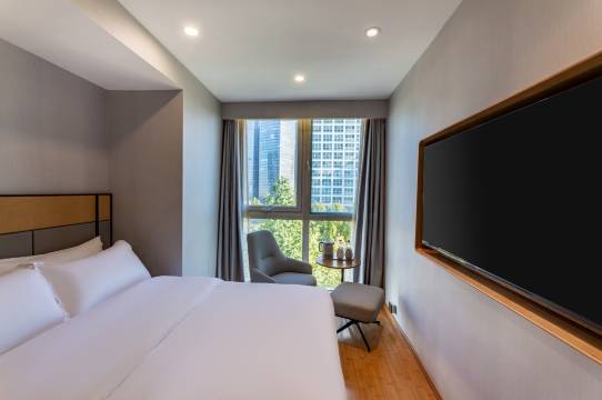 酒店有多种户型,能够满足您的需求,房间温馨舒适,拉开窗帘即可看到国贸、CBD的地标建筑,是您出差、旅行更好的住宿选择!
