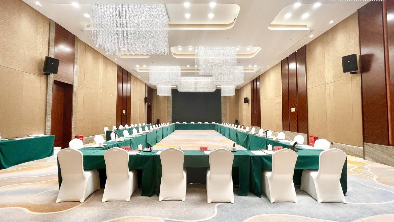 酒店共计两个宴会厅,多功能厅400平方米,剧院式可容纳约320人,圆桌用餐可放置24席。配有3.75米*12米高清LED大屏,美国JBL品牌音响,并拥有数字网络会议系统。宴会厅软包均为进口驼绒。