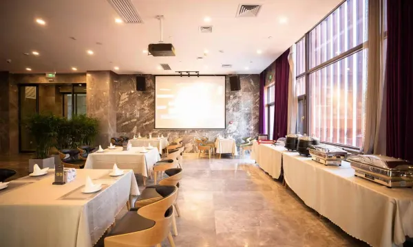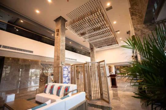 酒店一期投入使用的场所采用现代新中式的装修风格,同时配备高档音乐咖啡厅、休闲茶室、及多种类型会议室。