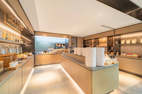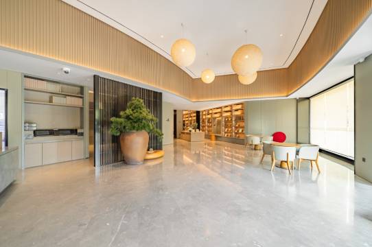 非常干净,简洁而不失高雅,功能性齐全而不繁琐,品味舒适俱佳,新能源车停车充电等非常方便而且价格合适。尤其早餐非常丰盛而口味尤佳,前台小哥小妹服务热情落落大方。