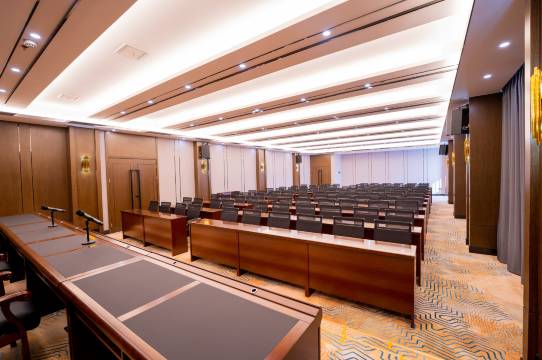 乾星国际大酒店是一家集客房、餐饮、会议型于一体的豪华酒店。酒店座落在中心位置,拥有高档客房百余间。酒店按精品酒店风格设计装修,环境优美,格调高雅。客房舒适、豪华。是您商务、会议的理想之选。