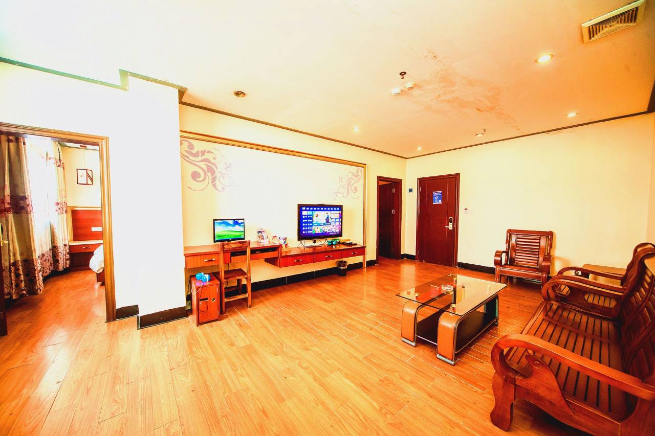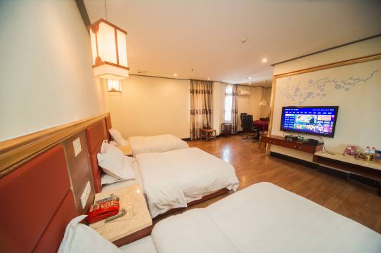 房间超大,两张一米三的大床,居家四口人出行,住的都能挺舒服,卫生也很好,有自己的专用停车场,服务态度挺好!