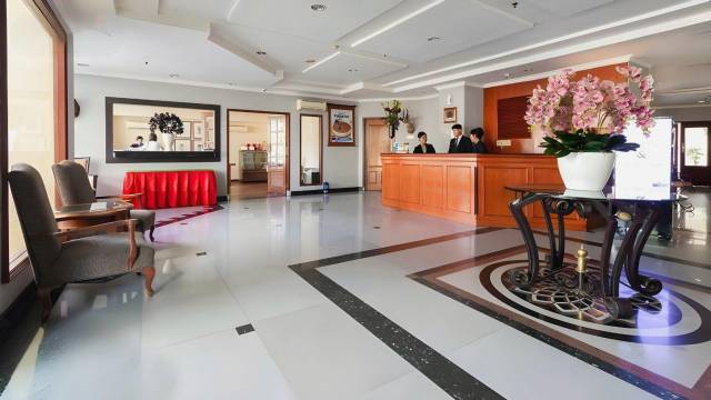 酒店位置很棒,离Lippo Mall和Sun Plaza这两个商场都非常近。房间很宽敞,大厅也足够大,可以容纳我们四个人。虽然是老建筑,但维护得很好。