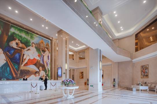 酒店大堂二层挑空,400余平方超大空间,拥有各类房间(其中大床间、标间、套房),房内配备多功能记忆枕,同时提供晚安奶服务,提高您的深睡眠质量,酒店内有两个多功能会议室,可同时提供200人左右会议,酒店配备自助餐厅可提供早、中、晚自助餐,可同时接待大型团队,酒店内与多家商户合作,让您足不出户,满足您各种生活所需,欢迎您光临惠顾!