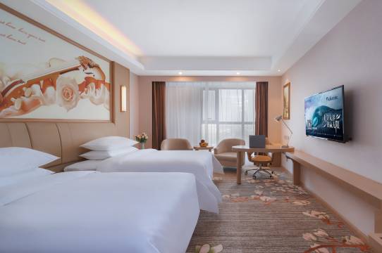 酒店在全国各地覆盖520余城市,3000家门店,获得了不少业界殊荣,该酒店致力于为客户提供健康、舒适的高附加值产品及良好的睡眠体验。形成了“舒适典雅、健康美食、豪华品质、安全环保、音乐艺术、健康助眠”六大品牌价值体现,打造轻高星领军品牌,拥有会议室超大LED屏和电子投影仪。为商务会议提供了不同的选择,配备了平均38平方米以上的豪华空间。采用了符合人体工学设计的愉梦之床,国际卫浴,高清数字电视,贴心的洗衣服务… …让每一次舒适入住体验都有难忘的回忆。