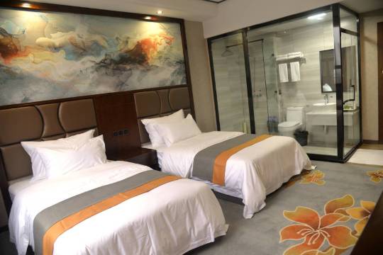 酒店自有院内停车场,停车方便,有电梯,房间设施设备配置齐全,该有的都有,家具及床上用品品质也不错,睡觉舒适,热水出水量大,性价比不错。距离县城中心步行1.5公里。