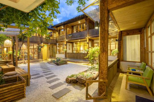 民宿设计别具匠心,集品质设计感及人性化舒适度为一体。院落阳光充沛,核桃树、多肉、青竹、紫藤...蓬勃生长。