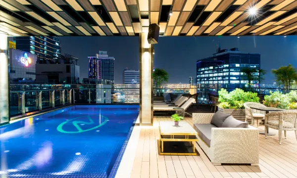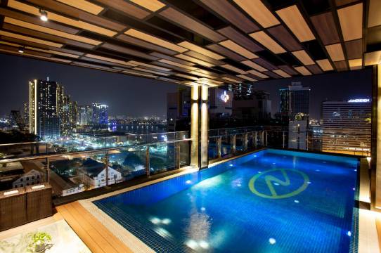 地段好,顶楼可以看一点夜景,还有泳池,酒吧。