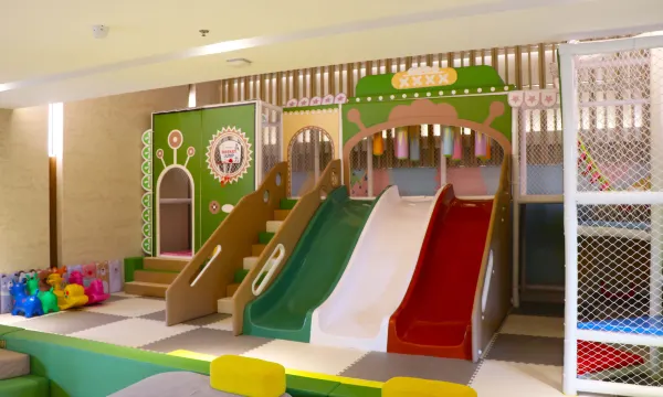 强烈推荐!时间有限的情况下选择去西游乐园带娃玩,正巧定了这家酒店,服务非常好,到了又升级了房间,小朋友很喜欢,晚上去玩了西游乐园,有专车接送。第二天酒店里有好多适合小朋友玩耍的地方,室内乐园,还有洗衣房健身房,室外小朋友还可以近距离接触小动物,打枪,树屋探险,还有3D打印,真的很不错。夏天来的话应该还可以有农家水果采摘,推荐推荐!