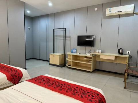 宾馆内装潢整洁而富有空间感,干净的瓷砖地面带给您舒适之感。客房内采用的是现代家居风,墙面的涂料淡雅清新,木制的电视柜更是带有家的温馨。两扇朝南的大窗带来良好的通风与采光,其他如空调、独立卫浴、热水等基础配套设施配备齐全,旨在给您带来生活上的便利。宾馆用温馨的家居体验与热情的服务态度,不负您的光临!