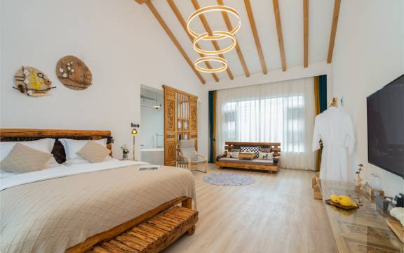 宽敞独特的公共区拥有大堂吧、酒吧、书吧、餐厅、茶室、儿童天地、健身器材等别致空间。露台一定要感受,月下品优茶,尽享慢生活,完美的度假惬意!