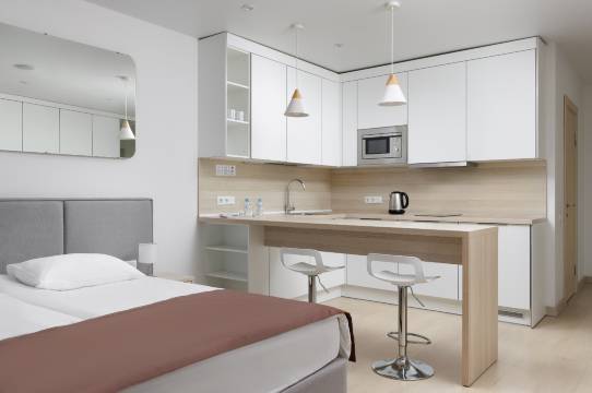 非常棒的公寓酒店,位置优越。房间明亮,宽敞,整洁,角角落落一尘不染,尤其喜欢一组崭新的原木衣柜,空间充足。配备了所有短期居住需求的设施,舒适满分。
