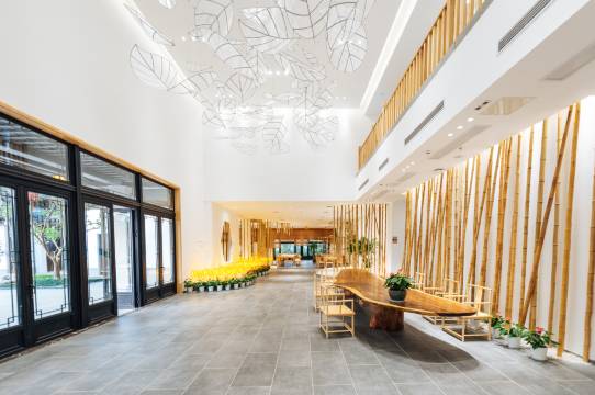这个酒店真的出乎我们意料的好,跟几个初中同学拖家带口,一行17人,随机选了一家,没想到惊艳到我们了。环境很好,风格我们都很喜欢,园林建筑,孩子们还在前台那里领取到了收工卡片,在大厅制作了漂亮的风筝。前台接待也很热情,高效率办理入住,提前帮忙打开空调,带领去房间,太细致周到了!!!最后还帮我们收拾大厅桌子上手工残品,必须点赞!!!我们约定下次还要再来!