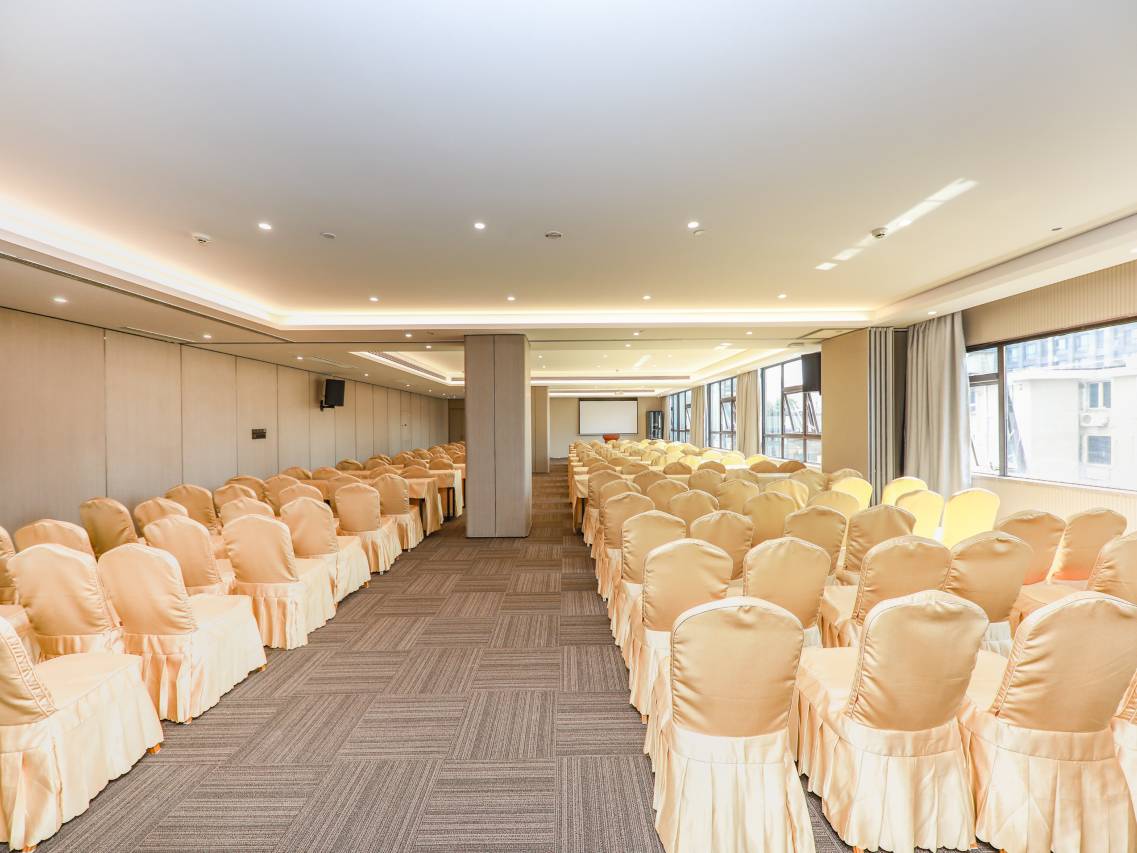 酒店配套完善,集会务、健身房、洗衣房、大堂书吧,机器人服务、餐厅、足浴、及大型停车场为一体。客房内中央空调、精选茶具(拾趣)、超大屏幕液晶电视、无线畅游WIFI,是您商务洽谈,度假休闲的上佳选择!