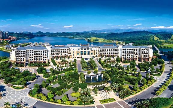 距离惠州西湖约车程17分钟。 酒店总建筑面积达10万平米,并由全球著名的建筑设计公司WATG和室内装潢Wilson公司联合打造,选取了热带风格元素,与周围的湖畔层峦相融合。 客房可以欣赏花园或湖泊景致,并配有保险箱和熨烫设施。