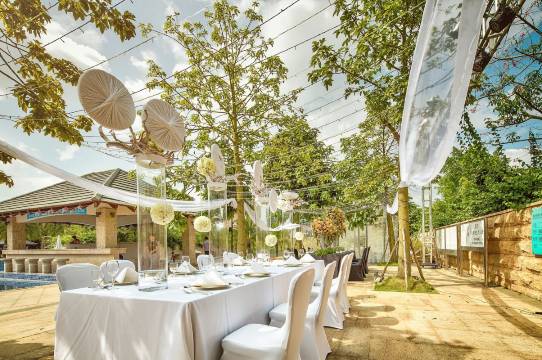 酒店拥有近 22,000 平米的室内外会议和宴会空间,能灵活配合各类活动需求,使商务和休闲得到完美结合,更是举办梦幻婚礼的优质场地。